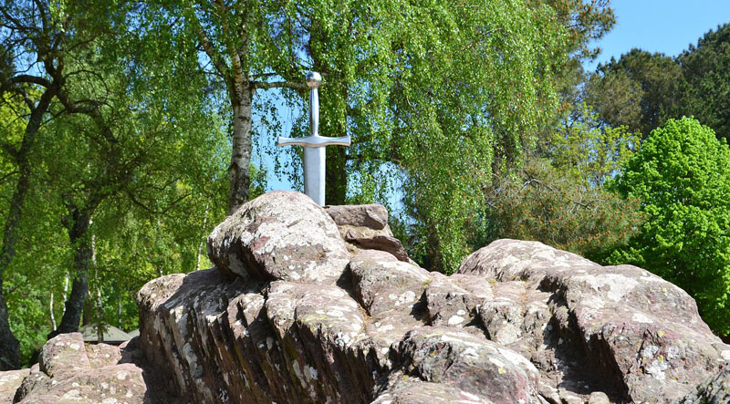 Obwohl der kleine Artus direkter königlicher Abstammung war, wurde er der Legende nach von dem Zauberer Merlin, einem großartigen Lehrer, im Geheimen großgezogen. Nach dem Tode des Königs Uther Pendragon war deshalb kein Erbe zugegen, was eine Zeit des Aufruhrs und der Unbeständigkeit verursachte. Merlin prophezeite, dass jener, dem es gelingen würde, ein majestätisches, magisches Schwert namens Excalibur aus dem Stein zu ziehen, von dem es umschlossen war, rechtmäßig zum neuen König gekrönt werden sollte.